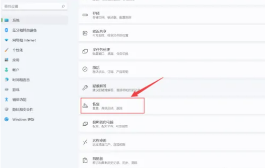 2、在設置中,點擊恢復的選項。