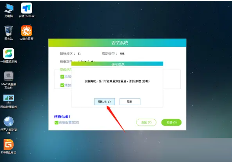 8、系統安裝完畢后,軟件會自動提示需要重啟,并且拔出U盤,請用戶拔出U盤再重啟電腦。