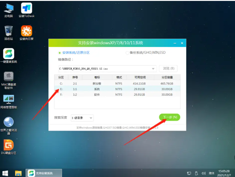 5、選擇后,再選擇系統安裝的分區,一般為C區,如若軟件識別錯誤,需用戶自行選擇。選擇完畢后點擊下一步。