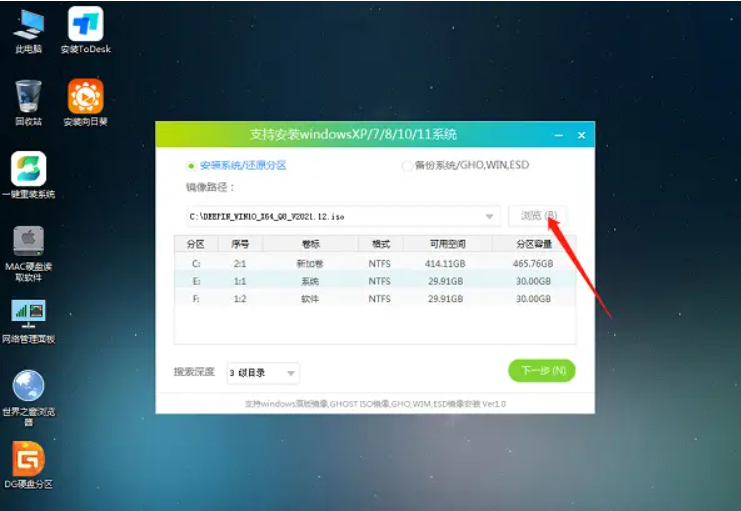 4、打開工具后,點擊瀏覽選擇U盤中的下載好的系統鏡像ISO。