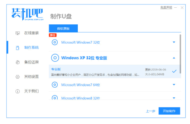 3、選擇要安裝的系統版本,點擊開始制作。