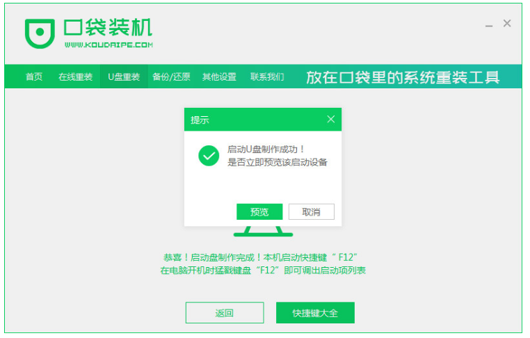 5、點擊取消選項,拔出U盤啟動盤,把它插入需要重裝電腦usb接口上。