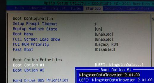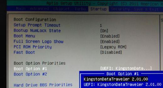 6.選擇Boot Option#1,回車,選擇U盤選項,回車;