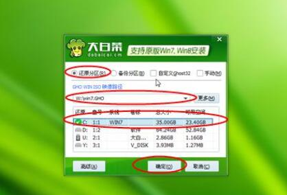 方法二、通過大白菜一鍵裝機U盤重裝系統win7