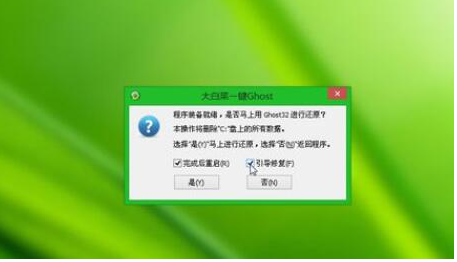 8、確認之后彈出懸浮窗口,勾選“完成后重啟”和“引導修復”,點擊是開始執行還原過程。