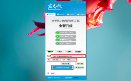 1、插入一個8g以上的空u盤到電腦接口,下載并打開老毛桃u盤啟動盤制作工具,默認設置,點擊“一鍵制作成USB啟動盤”。
