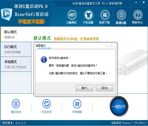 以上便是冰封一鍵裝機u盤教程圖解,以及更加簡便好用的小白裝機工具制作u盤安裝系統步驟,兩種工具都各有特色,只不過小編更推薦方便好用的小白裝機工具。感興趣的小伙伴可以參照教程操作。