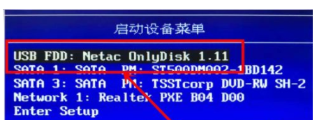3、在電腦彈出的啟動設備菜單中,選擇U盤對應的選項,按回車就可以從U盤啟動。