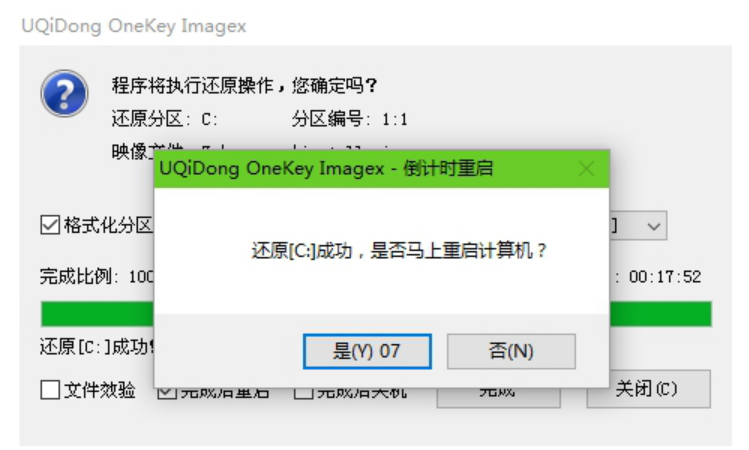 3、在彈出的窗口點擊“完成后重啟”,點擊“確定”即可。