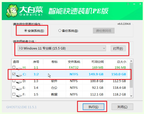 方法二:使用大白菜裝機工具的U盤制作功能完成系統win10安裝