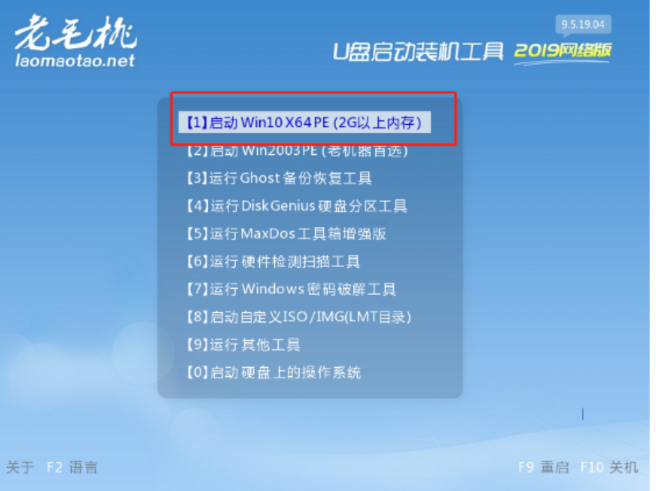 3、 然后通過鍵盤上的上下鍵來選擇【1】回車進入PE桌面。