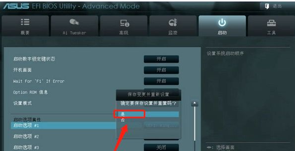 4、切換到啟動選項#1,可以用鍵盤上下鍵切換。