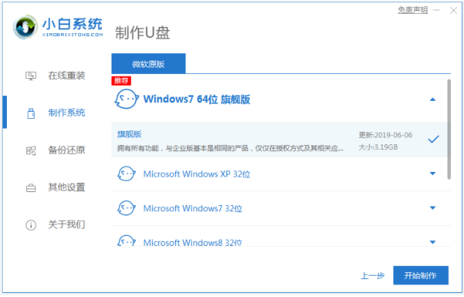 2、選擇我們需要安裝的系統,開始制作啟動盤。
