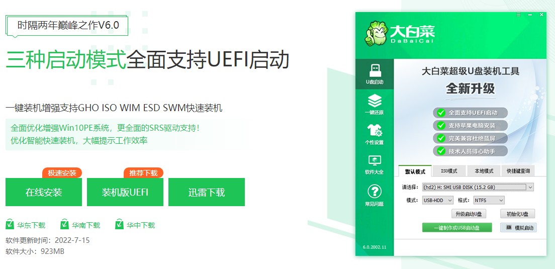 軟件版本:大白菜超級裝機工具6.0