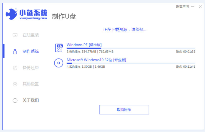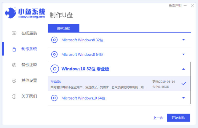 1、怎么制作u盤啟動盤呢?下載安裝小魚一鍵重裝系統,雙擊打開軟件,進入制作系統界面,選擇制作u盤,點擊開始制作。