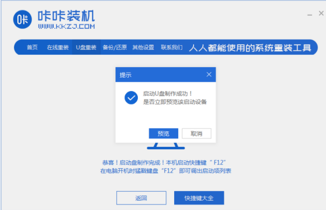 3、軟件制作u盤啟動盤完成后,選擇預覽需要安裝的電腦的啟動快捷鍵是什么,再拔出u盤。