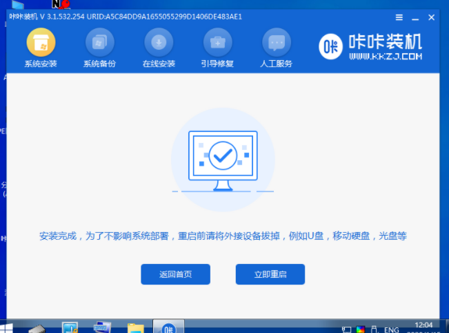 5、在pe系統桌面,打開咔咔裝機工具,選擇win7系統點擊安裝。