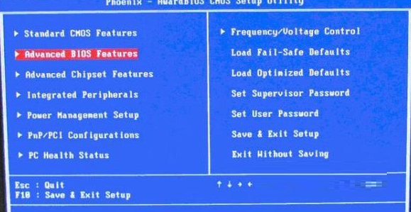 2、然后在界面中選擇“Advanced BIOS Features(高級BIOS設置)”,點擊“Hard Disk Boot P RIORITY”(硬盤啟動優先級)選項;