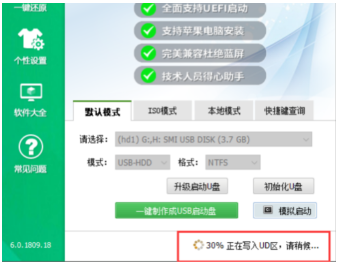 3.點擊USB-HDD,選擇NTFS,接著勾選一鍵制作USB啟動盤。