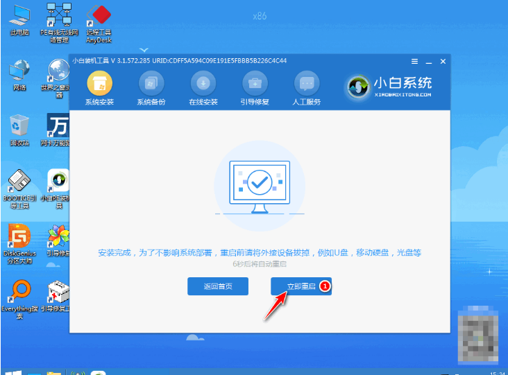 7、系統安裝完成,拔掉U盤,重新啟動電腦。