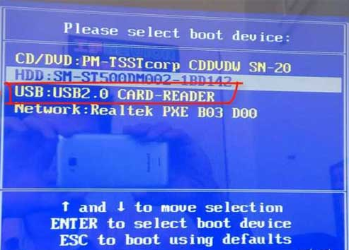 1、首先我們制作一個U盤啟動盤插入電腦,按下電腦的開機鍵,然后不停的敲擊U盤啟動熱鍵。出現啟動選擇界面,選擇U盤選項,回車。