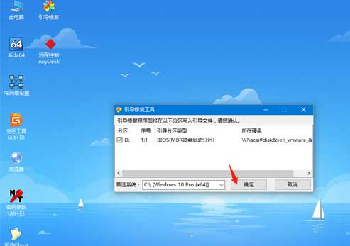 4、然后在彈出的窗口直接點擊確定。修復成功后,重啟電腦即可。