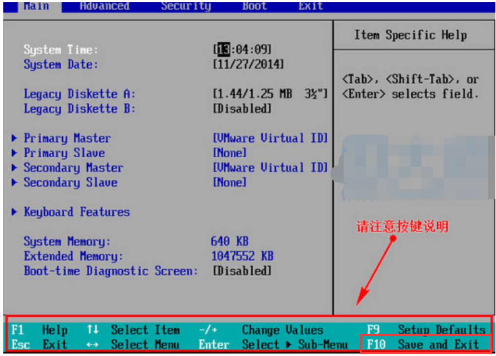 1.進入bios界面設置,記住底部快捷鍵操作。