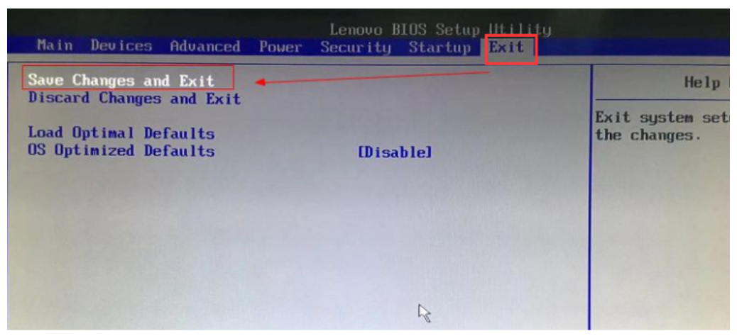 6.切換到exit界面,選擇save changes and exit項,或者按F10進行保存退出。