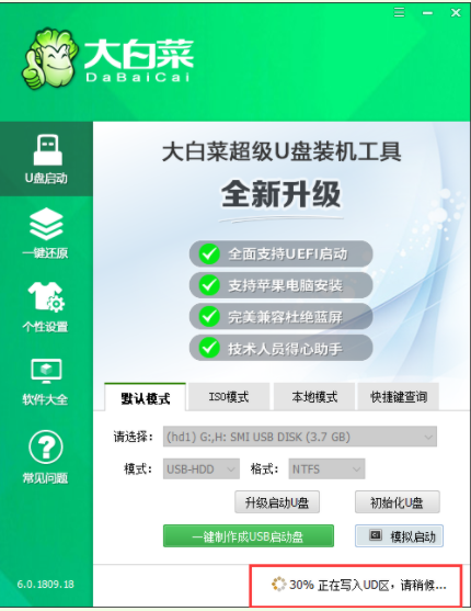 軟件版本:大白菜超一鍵裝機PE版