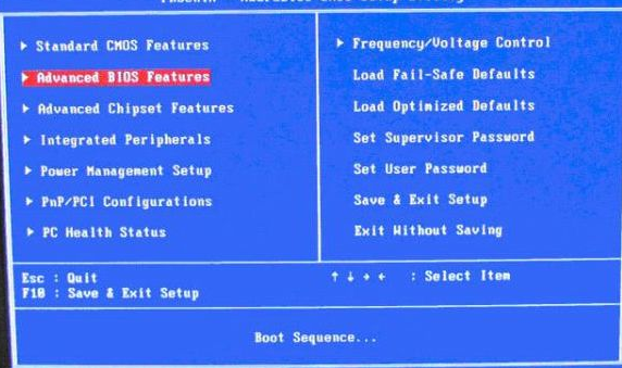 1.開機快速按Del鍵進入該BIOS設置界面,選擇高級BIOS設置Advanced BIOS Features