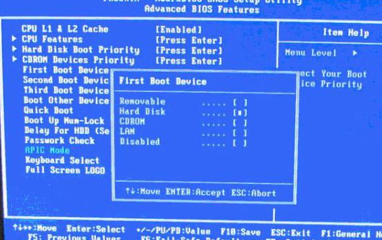2.高級BIOS設置(Advanced BIOS Features)的界面,首先我們選擇硬盤啟動優先級:Hard Disk Boot Priority