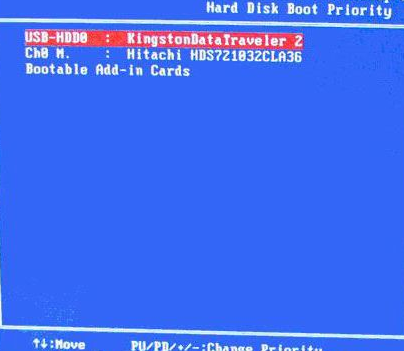 3.硬盤啟動優先級(Hard Disk Boot Priority)選擇:通過使用小鍵盤上的加減號“+、-”來選擇與移動設備,將U盤選擇在最上面。接著按ESC鍵退出。
