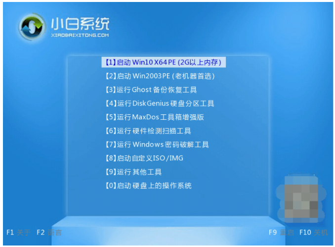 6、在進入到開機的界面時我們不停按“f12”或者“f11”,進入到電腦的啟動項界面當中,選擇u盤作為開機首選,在pe系統選擇界面,按1進入,進入后裝機工具此時將會自動安裝選擇的系統,無需我們手動干預。