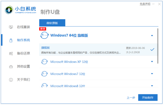 2、選擇本次需要的win7操作系統,點擊開始制作。