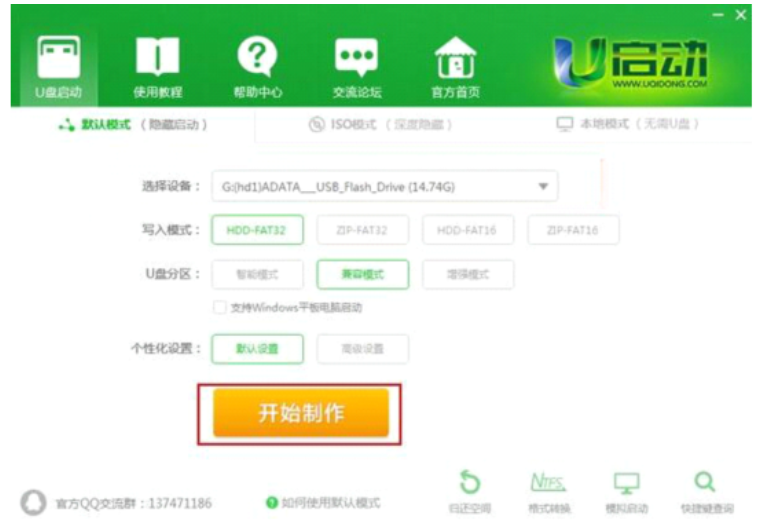 3、無需更改任何設置,直接點擊“開始制作”即可;如圖所示: