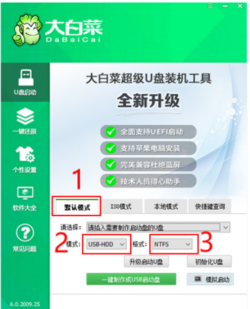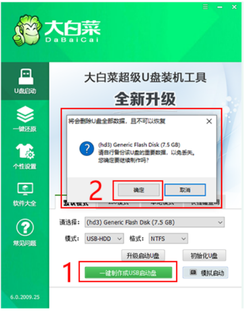 軟件版本:大白菜U盤啟動工具v6.0