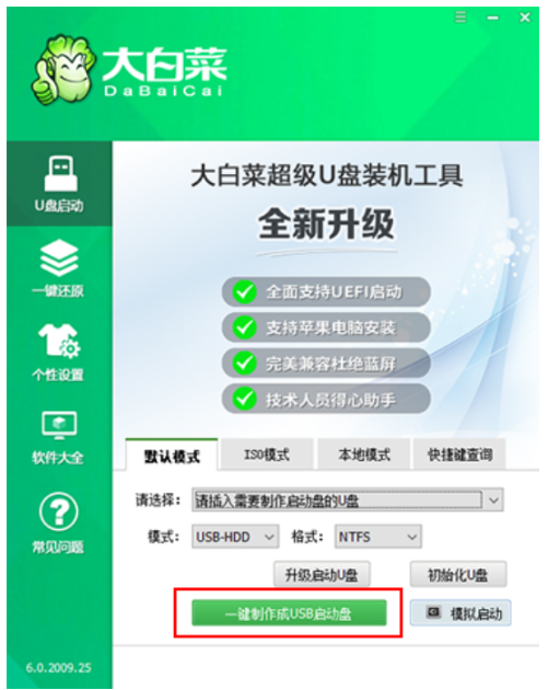 大白菜u盤啟動工具制作U盤啟動盤: