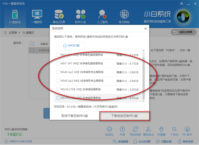 5.根據自己需求選擇要安裝的系統,點擊下方的下載系統且制作U盤。