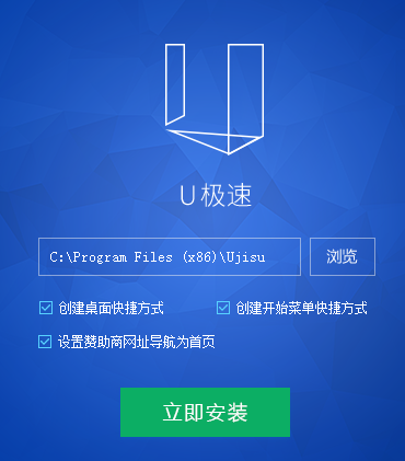 1、下載U極速u盤啟動盤制作工具,解壓壓縮包,雙擊.exe文件,點擊【一鍵安裝】或是【自定義安裝】,