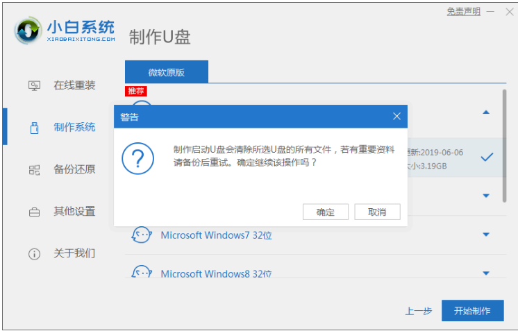 2、然后在制作系統中選擇需要安裝的操作系統,點擊開始制作。