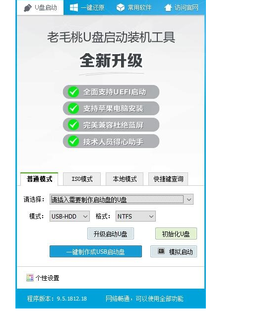 2.打開老毛桃U盤制作工具,插入需要制作的U盤。