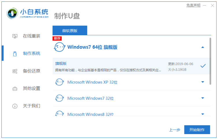 2、然后在制作系統中選擇需要安裝的操作系統,點擊開始制作。