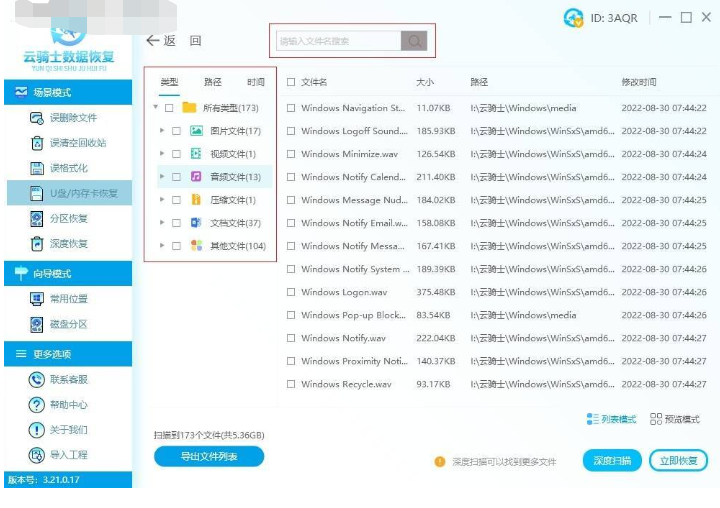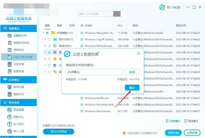 2、使用云騎士數據恢復工具進行恢復
