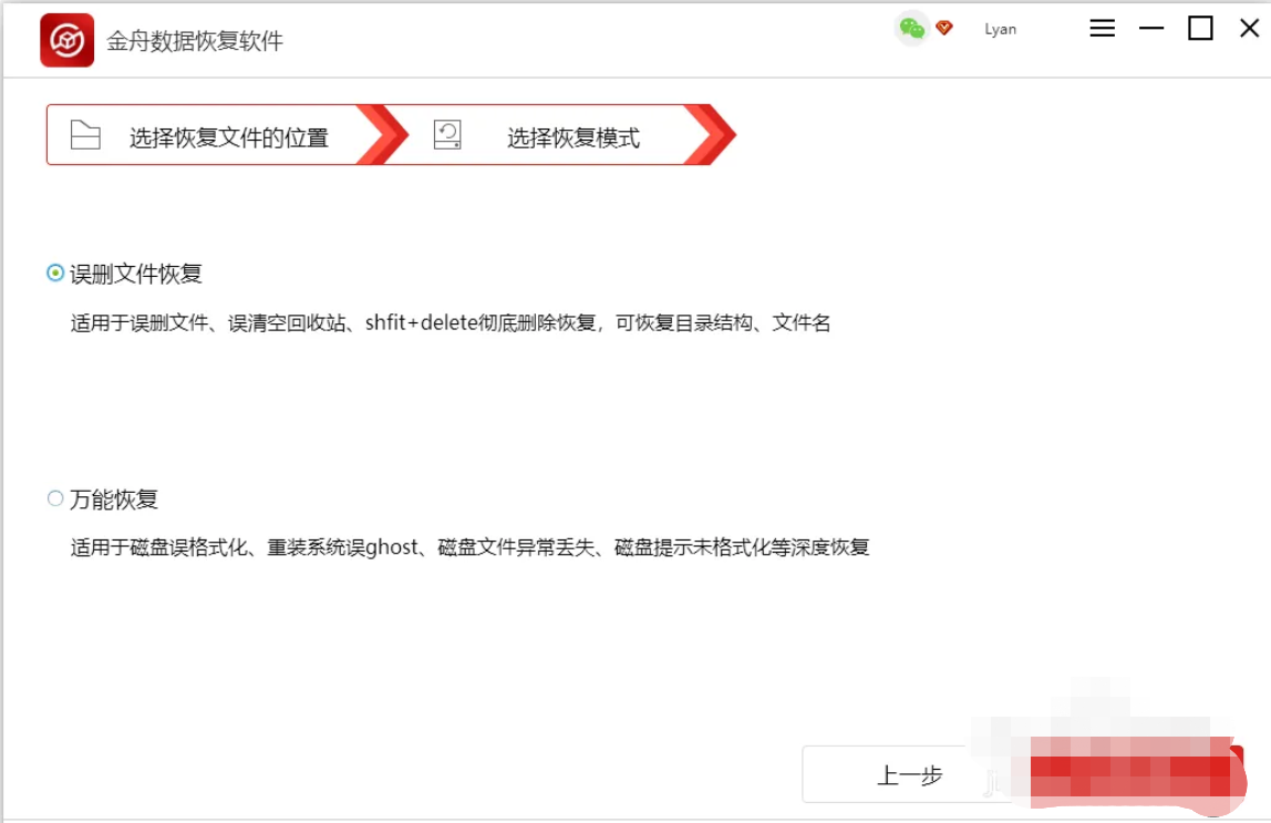 2、在這里,選擇其中一種恢復模式,點擊“下一步”。