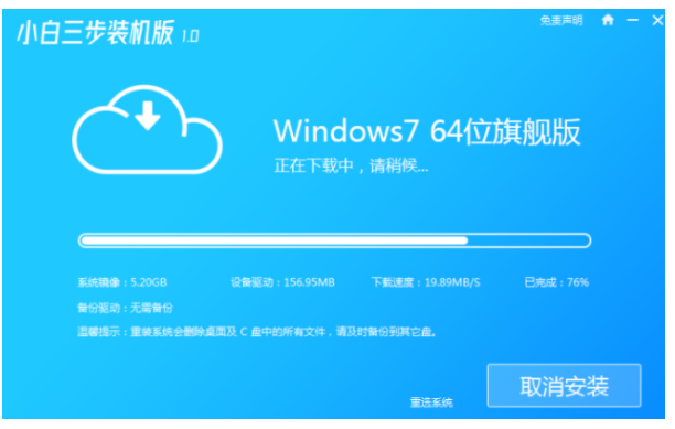 方法二:使用小白三步裝機版工具給華碩電腦在線重裝win7系統
