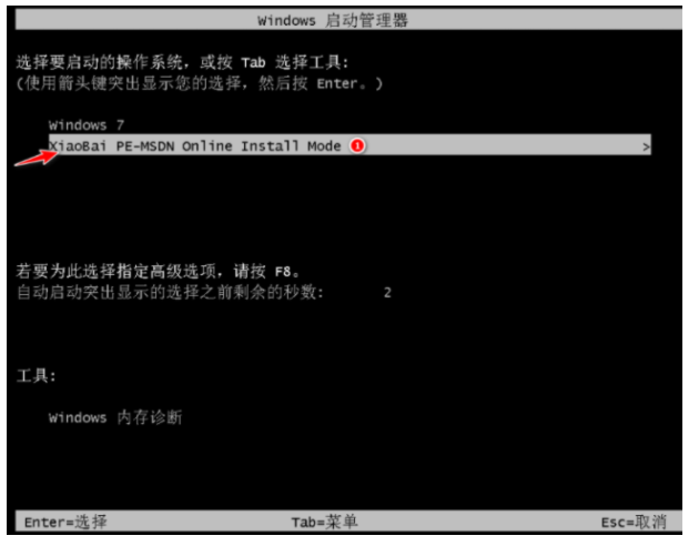 5、進入到如下界面中選擇進入到小白的PE系統。
