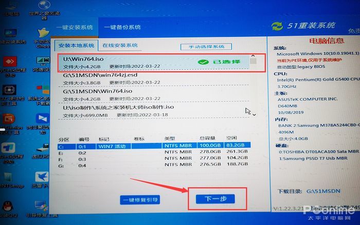 第九步:進入pe桌面后,會自動打開桌面一鍵安裝系統工具,打開后會自動選擇U盤里的系統鏡像,如果沒有選擇,就點“瀏覽”找到U盤里的系統鏡像,然后點“確定”就可以了。如果U盤里沒有系統鏡像,可以點擊在線安裝按鈕,選擇您需要安裝的系統,確定安裝就可以了。