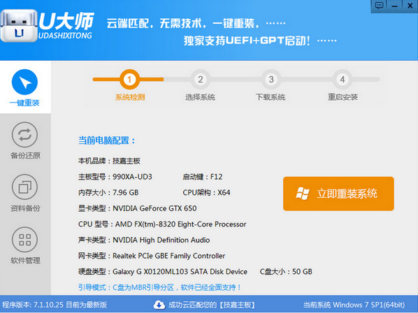 2、自動智能化檢測當前電腦信息,自動分析當前電腦是否適合使用u大師重裝,不強制安裝的。