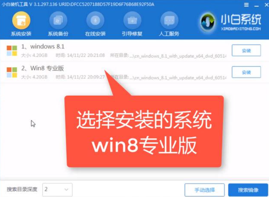 6.在pe桌面,裝機工具會彈出此時我們選擇win8系統。