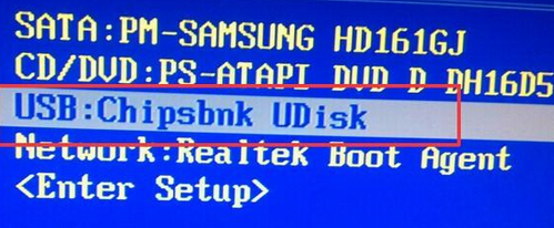 2、進入到啟動項選擇窗口界面,選擇usb驅動所在的位置,按下回車鍵就可以啦。